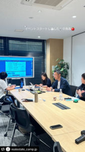 不動産キャンプでお繋ぎすることになりました。こういった議論や勉強会の中で積極的に発言する中で有識者からアドバイスをもらったり